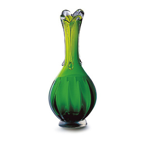 ◆ ガラス・クリスタル 花器・花瓶・フラワーベース グリーンロングネック花瓶