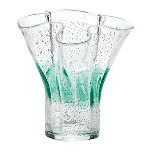 ◆ ガラス・クリスタル 花器・花瓶・フラワーベース グリーンフリル花器