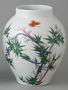 ◆ 朧型花瓶 柿右衛門写笹(有田焼)