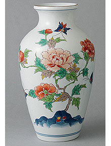 ◆ 中細花瓶 染錦牡丹蝶絵(有田焼)