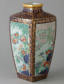 ◆ 角瓶 金彩花鳥図 (有田焼)