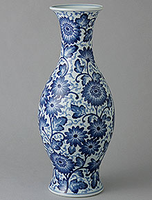 ◆ 細長花瓶 染付古代菊 (有田焼)