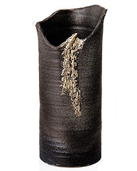 ◆ 黒釉銀彩筒型花器(信楽焼)