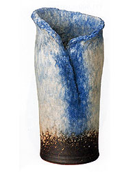 ◆ 青窯変ひねり筒型花入れ(信楽焼)