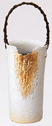 ◆ 白砂金彩つる付花入れ(信楽焼)