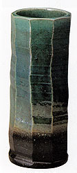 ◆ 青ガラス面取寸胴花入れ(信楽焼)