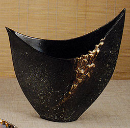 ◆ 金彩変形花器(信楽焼)