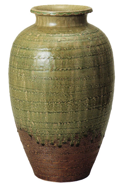 ◆ ビードロ松皮壺型花瓶(信楽焼)