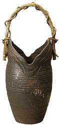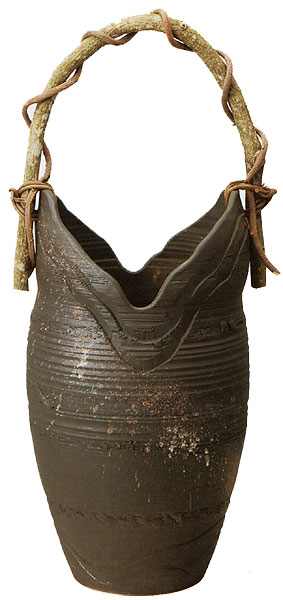 ◆ 黒窯肌つる付花入れ(信楽焼)