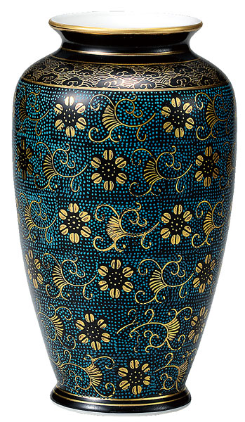 ◆ 8号花瓶・青粒鉄仙(九谷焼)