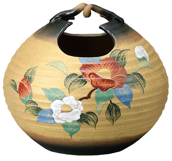 ◆ 8号花瓶・金彩山茶花(九谷焼)
